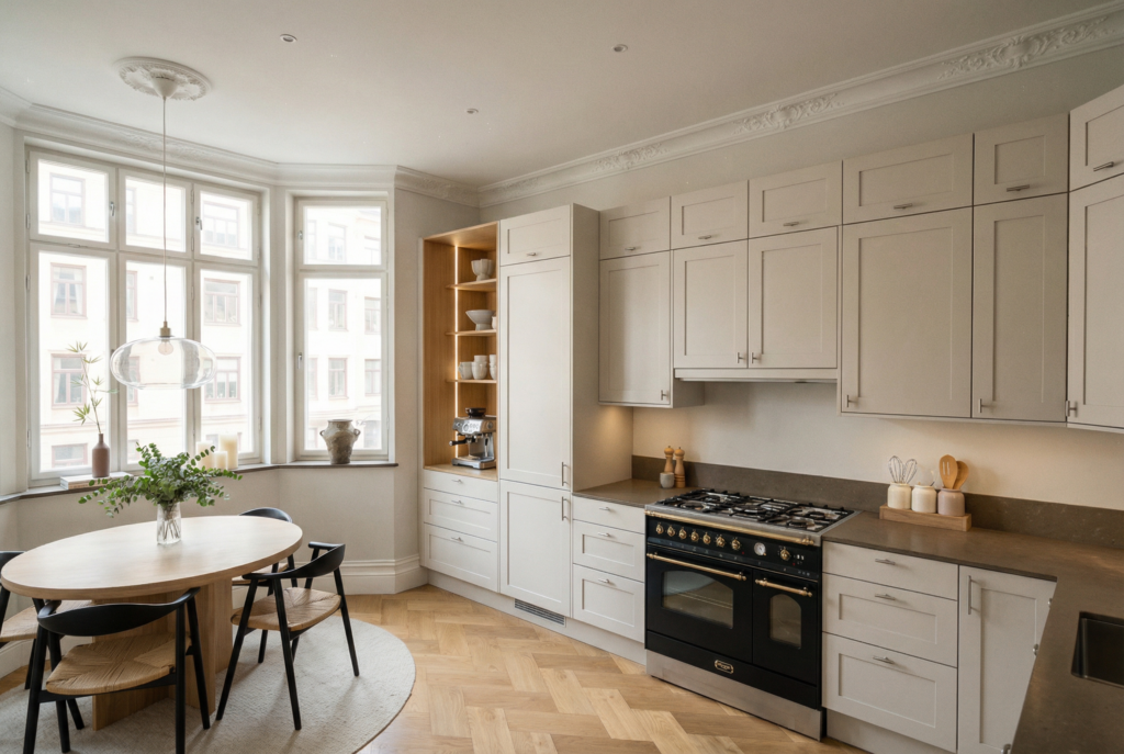 Med färgen Havre får du ett beige kök som smälter in i rummet och låter material och formspråk stå i centrum – perfekt för ett kök som ska kännas harmoniskt, balanserat och långsiktigt.