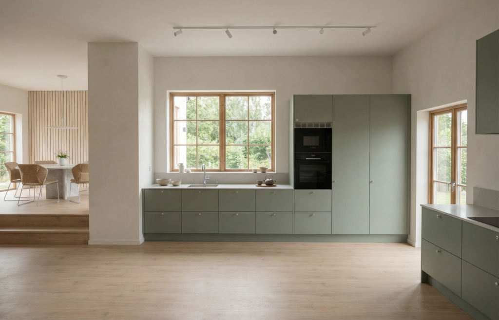 Som en spegling av västkustens skärgårdslandskap ger Kustgrön ditt kök en distinkt karaktär som för tankarna till hav och horisont. Den perfekta balansen mellan statement och tidlöshet gör denna nyans till ett spännande men samtidigt tryggt val för dig som vill skapa ett kök utöver det vanliga. Ett grönt kök passar utmärkt för dig som vill ge hemmet en tydlig identitet utan att det blir för mörkt eller tungt.